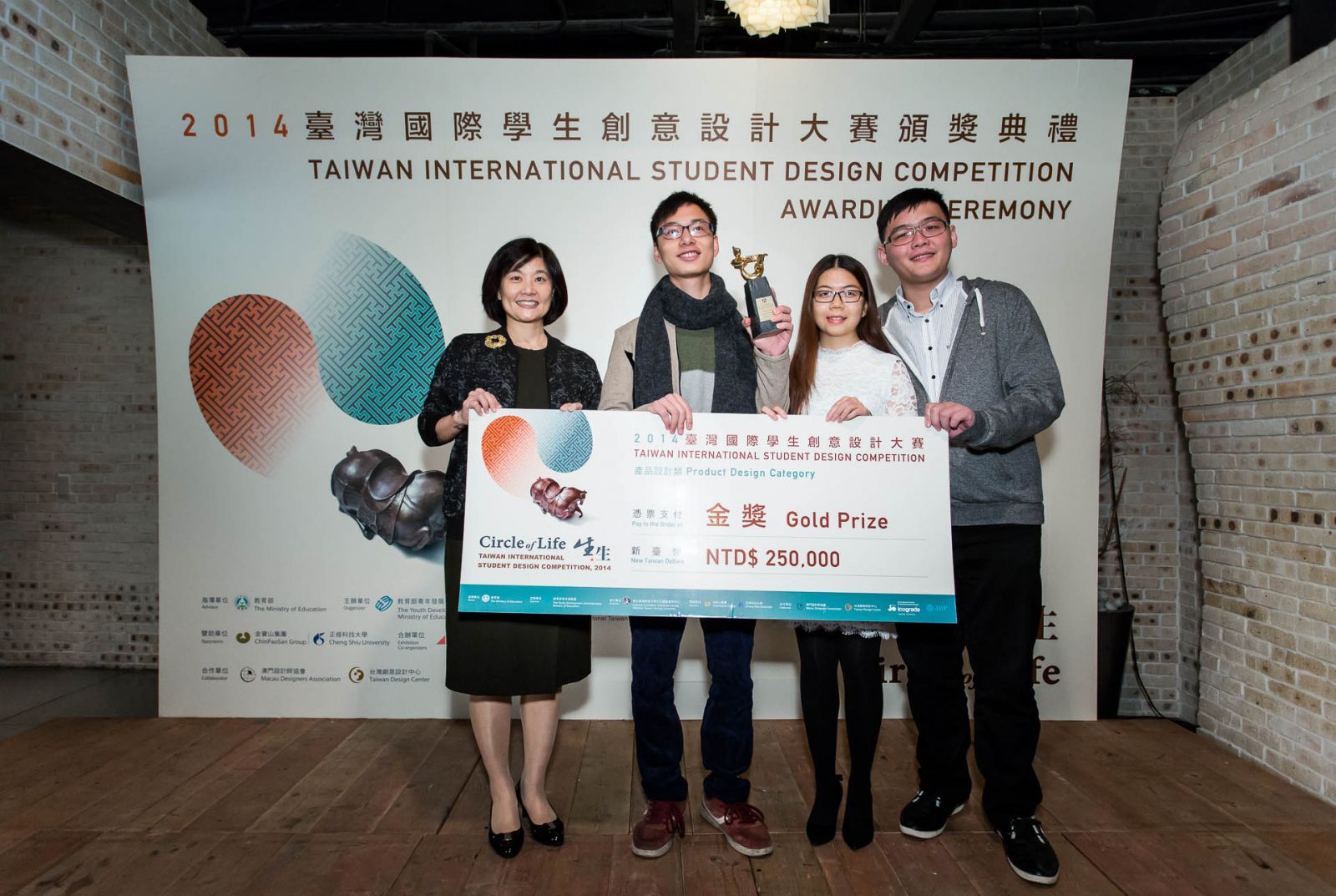 由教育部青年發展署主辦、國立臺灣師範大學文創中心執行的「2014臺灣國際學生創意設計大賽」共吸引了來自43個國家及地區、721個院校系所的學生報名,總計徵得4,073件作品。經過初選與決選兩輪的激烈競爭,最終選出年度大獎、國際設計組織特別獎、各類金、銀、銅獎、佳作,以及廠商指定類兩品牌等獎項共52件得獎作品。頒獎典禮於今(22)日下午2時,假築空間舉行,教育部政務次長林思伶也特地到場致詞及頒獎,給予年輕創作者支持與鼓勵。